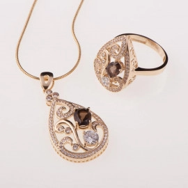 Висулка от "Jacklin " жълто злато със цирконии и опушен топаз