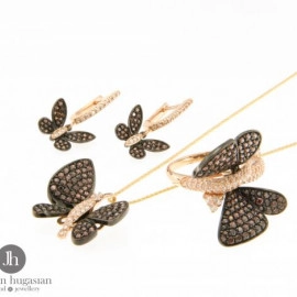Комплект пръстен,обеци и висулка от " Jacklin " в жълто злато,гланц с цирконии
