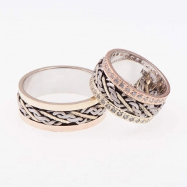 Венчални халки от "Jacklin " бяло злато и розово гланц с диаманти