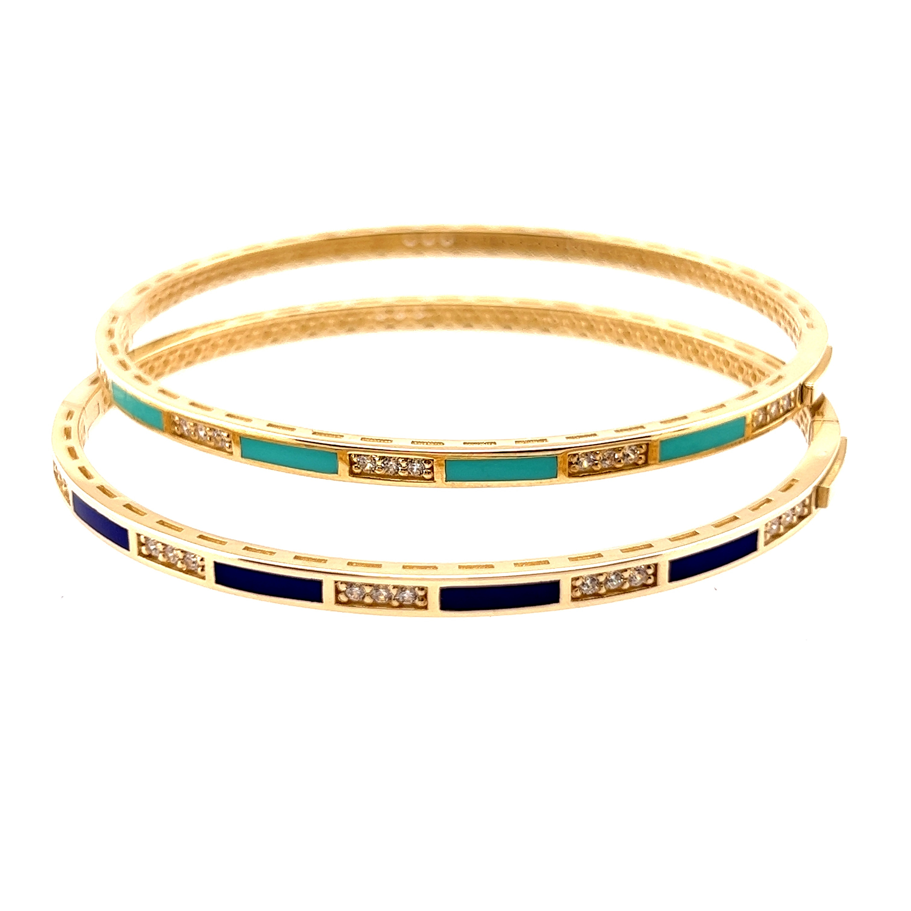 Гривна от “Jacklin hugasian” в жълто злато с емайл и цирконии.