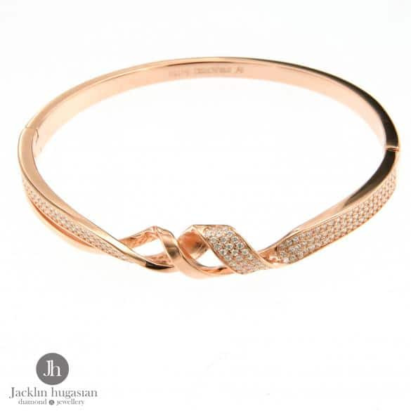 Гривна от "Jacklin hugasian" в розово сребро с цирконии. Диаметър гривна 5.8 см.