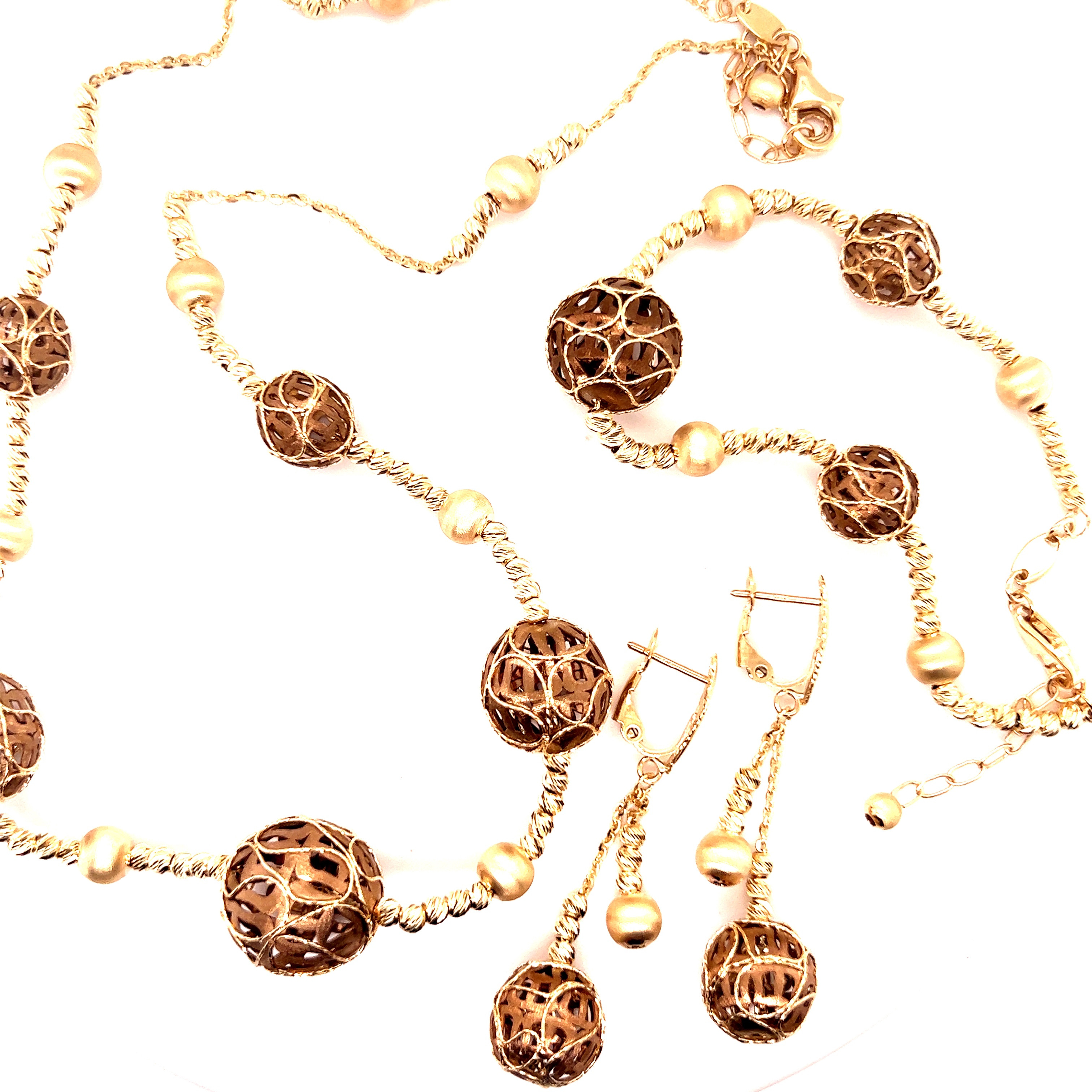 Комплект колие, обеци и гривна от “Jacklin hugasian” в жълто и кафяво злато.
