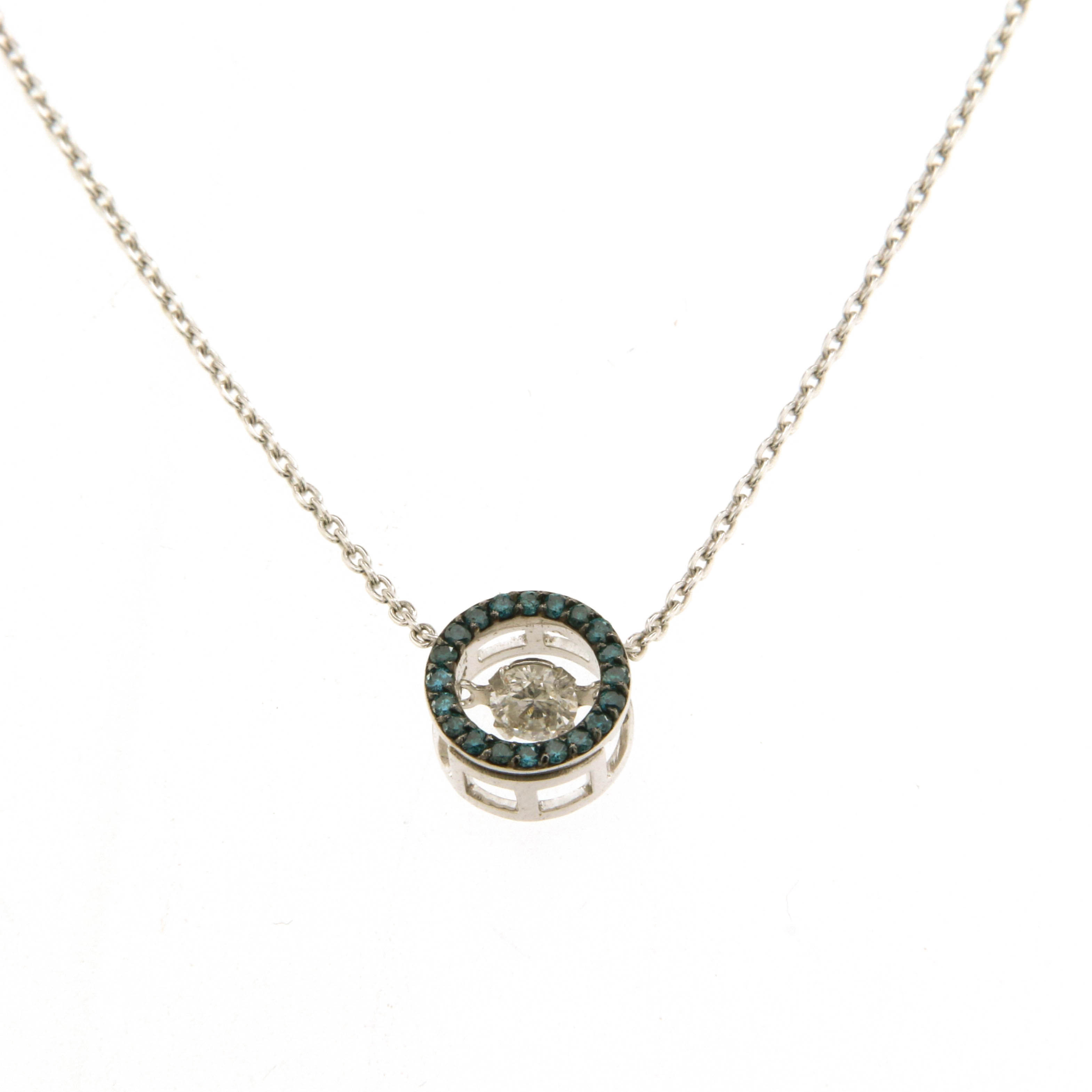 Колие от "Jacklin hugasian" в бяло злато с бял диамант и малки сини диаманти.Дължина 42 см.Колекция "Roberto Bravo".Произход Италия