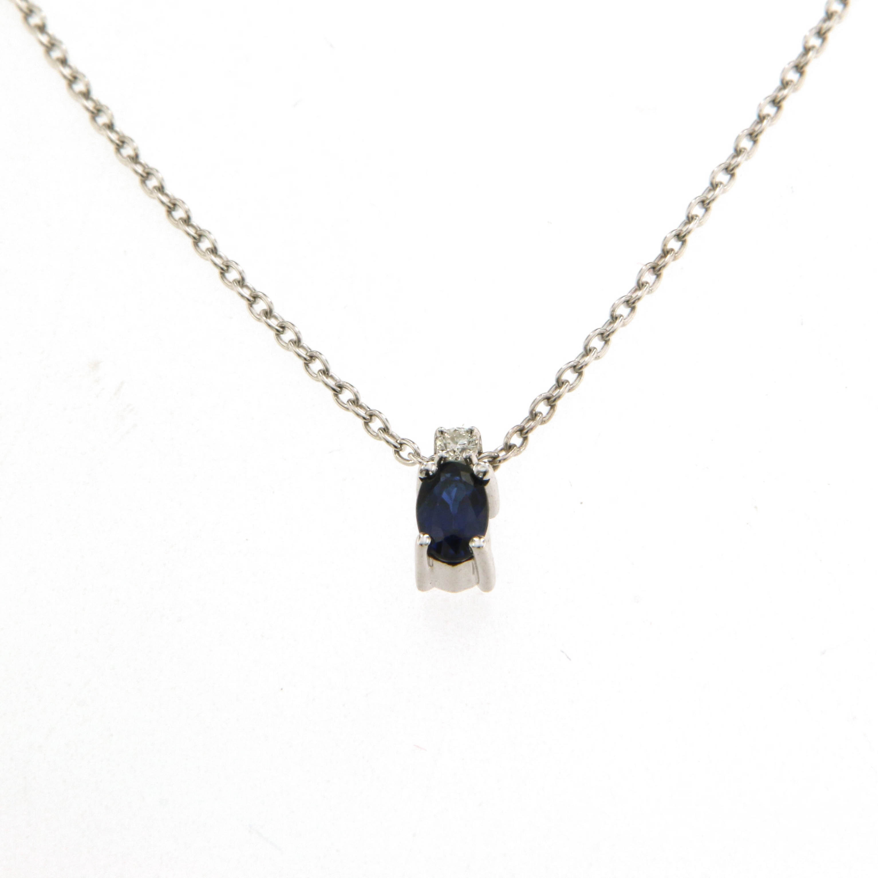 Колие от "Jacklin hugasian" в бяло злато със сапфир и диамант. Дължина 45 см.