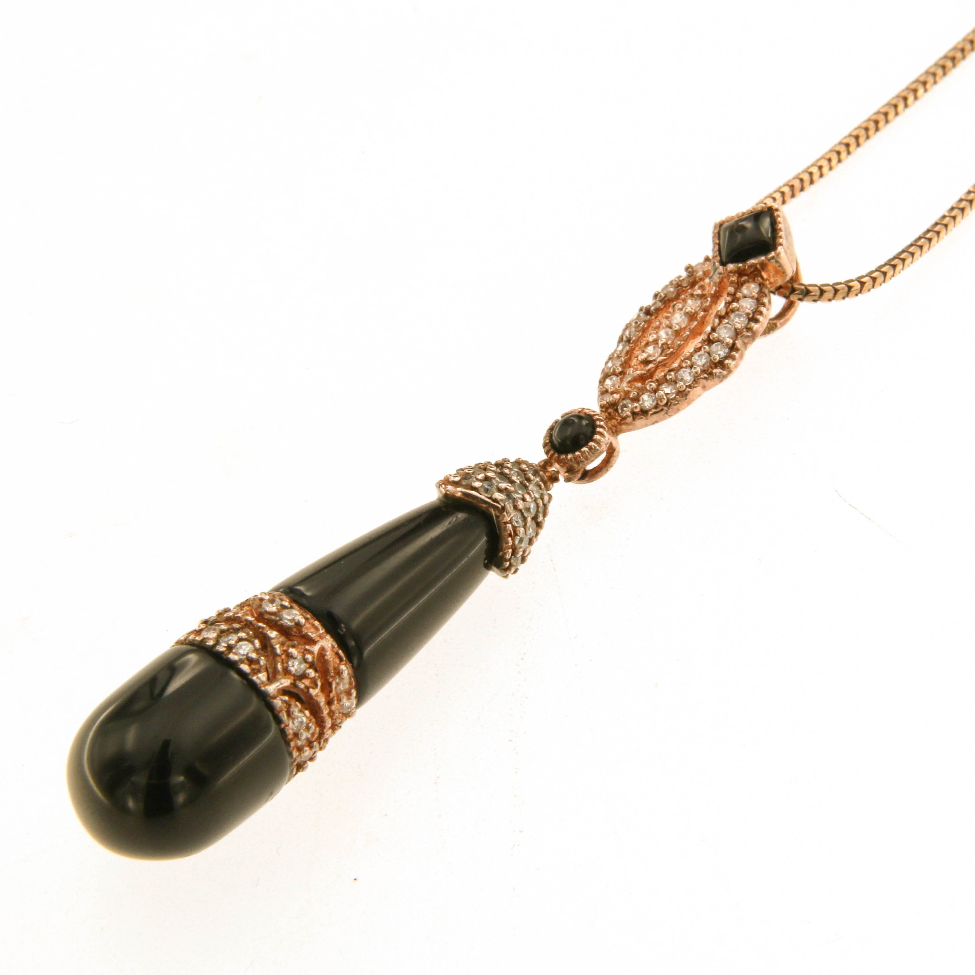 Колие от "Jacklin hugasian" в розово сребро с цирконии и черен оникс. Дължина колие с висулката 50 см. Колекция "So chic".
