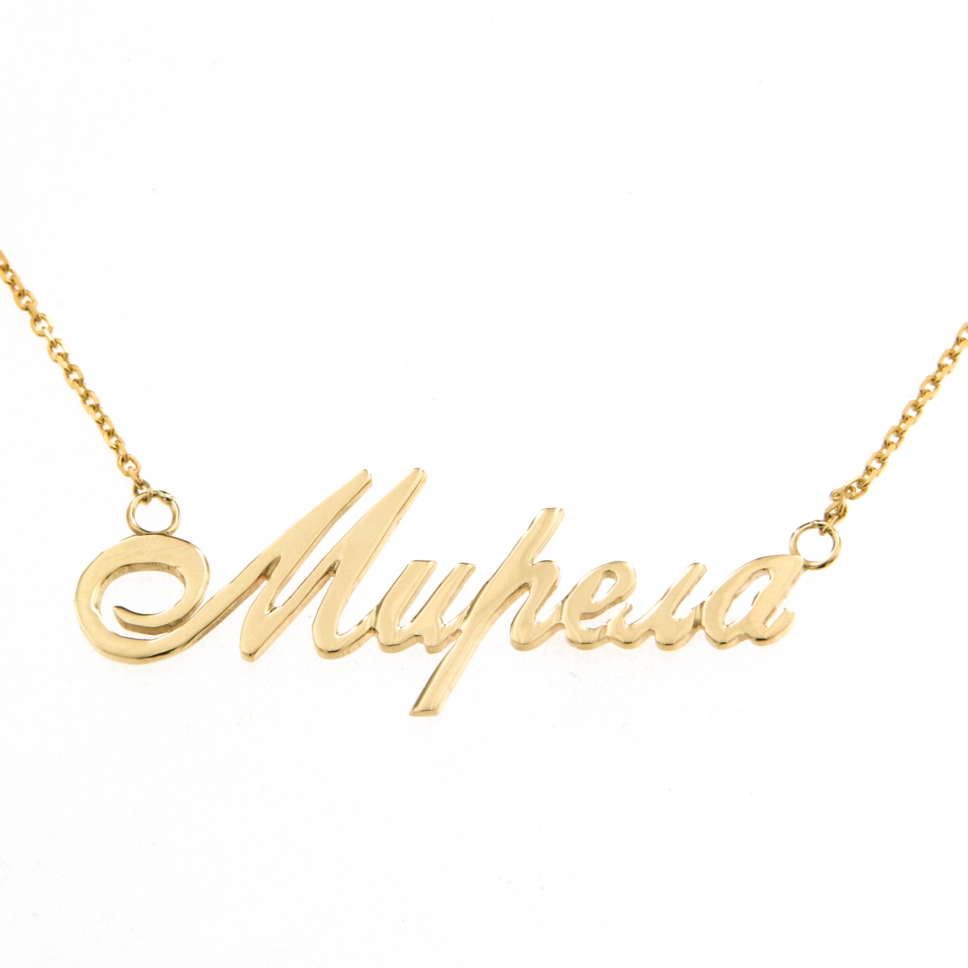 Колие от “Jacklin hugasian” в жълто злато,с име по избор .Ръчна изработка.
