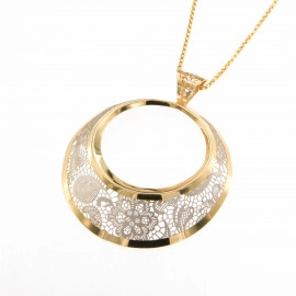 Комплект колие и обеци от " Jacklin hugasian " в бяло и жълто злато. Произход Италия.