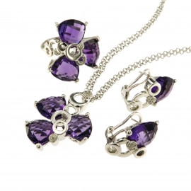 Комплект пръстен, колие и обеци от "Jacklin hugasian" в сребро с розов кварц и цирконии.