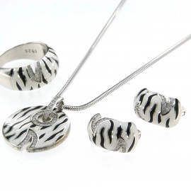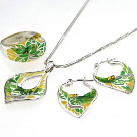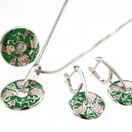Комплект пръстен, колие и обеци от “Jacklin hugasian” в сребро с разноцветен емайл.