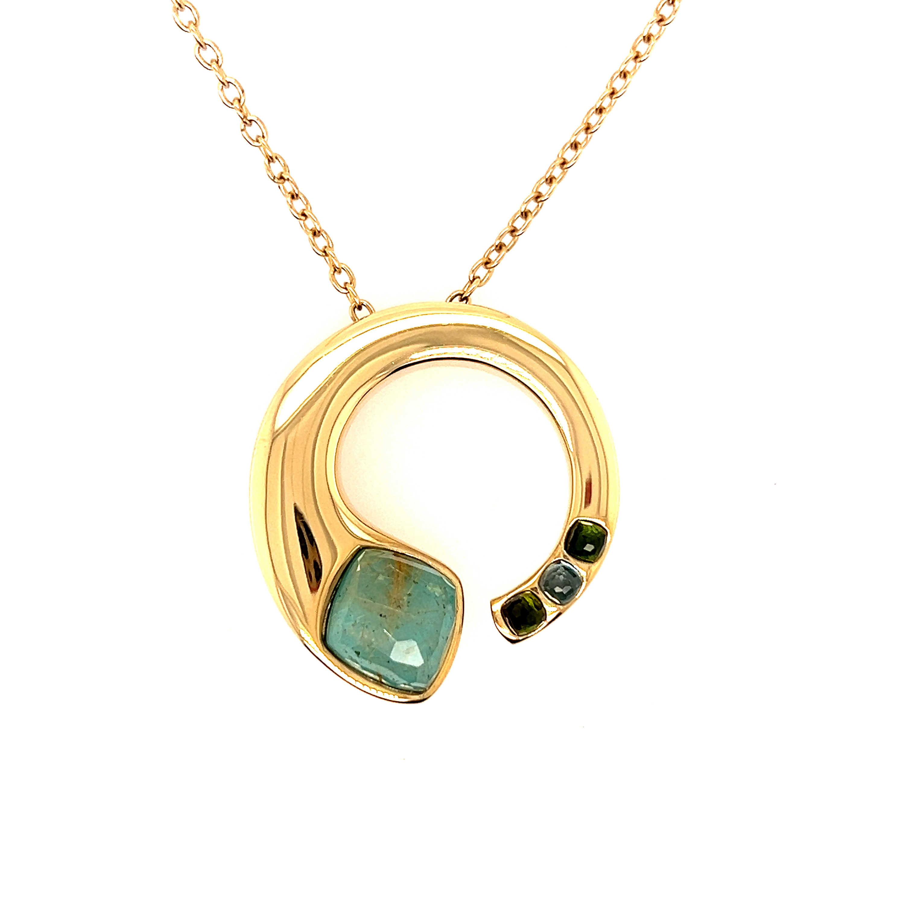 Обеци от “Jacklin hugasian” в жълто злато с "Косите на Венера",перидот и топаз