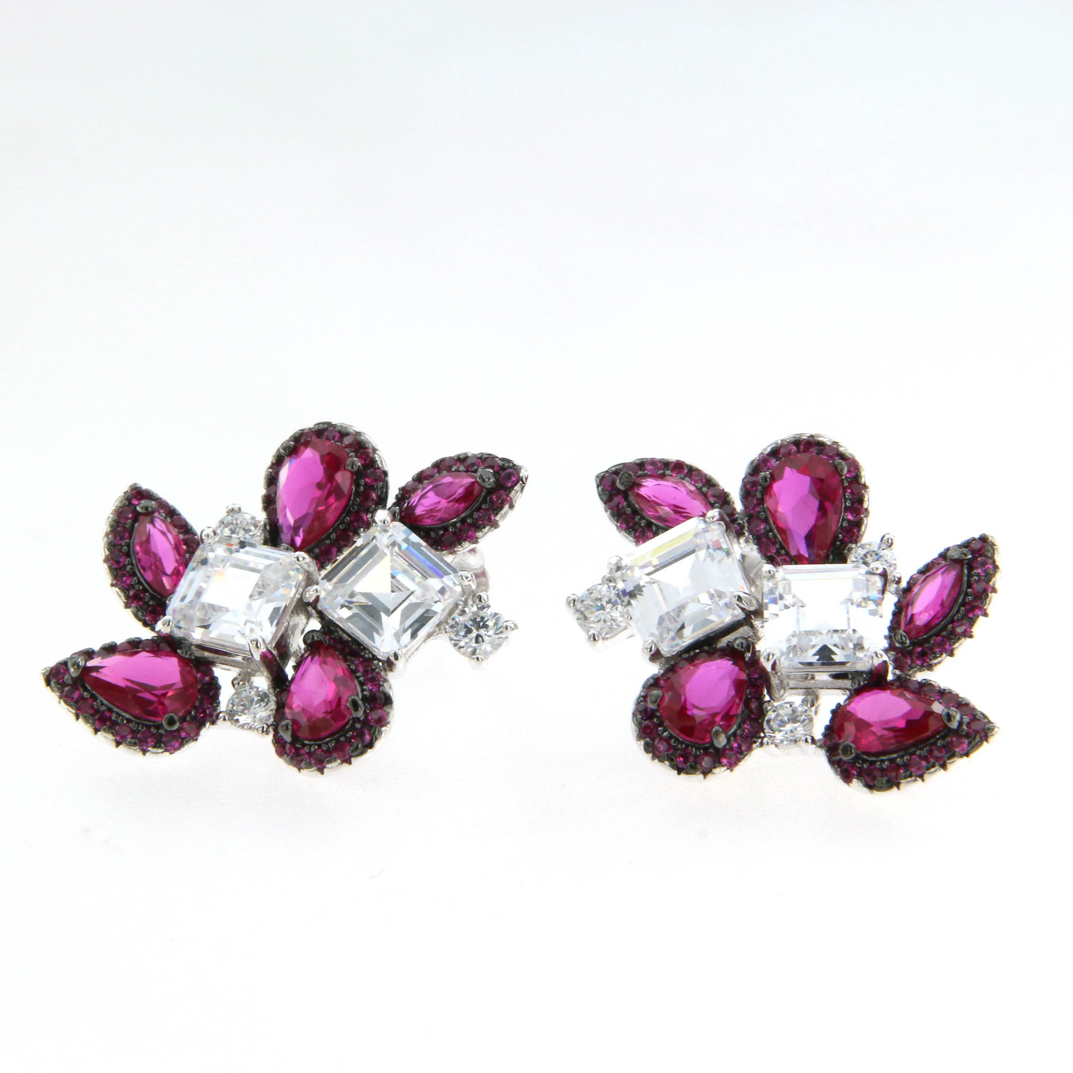 Обеци от “Jacklin hugasian” в сребро с цирконии и розов турмалин.