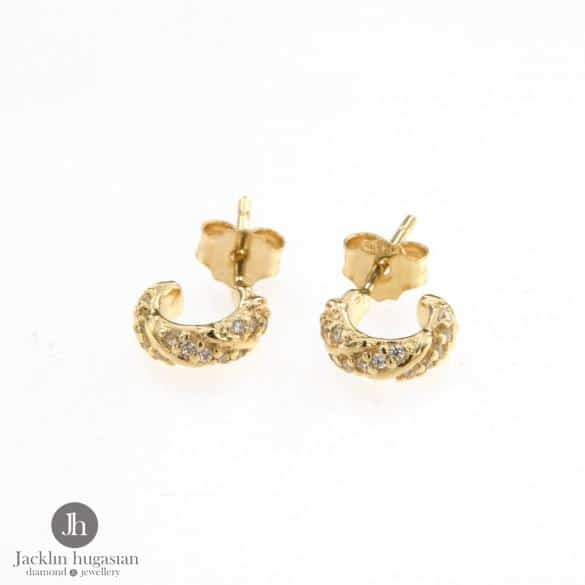 Обеци от "Jacklin hugasian" в жълто злато гланц с циркони