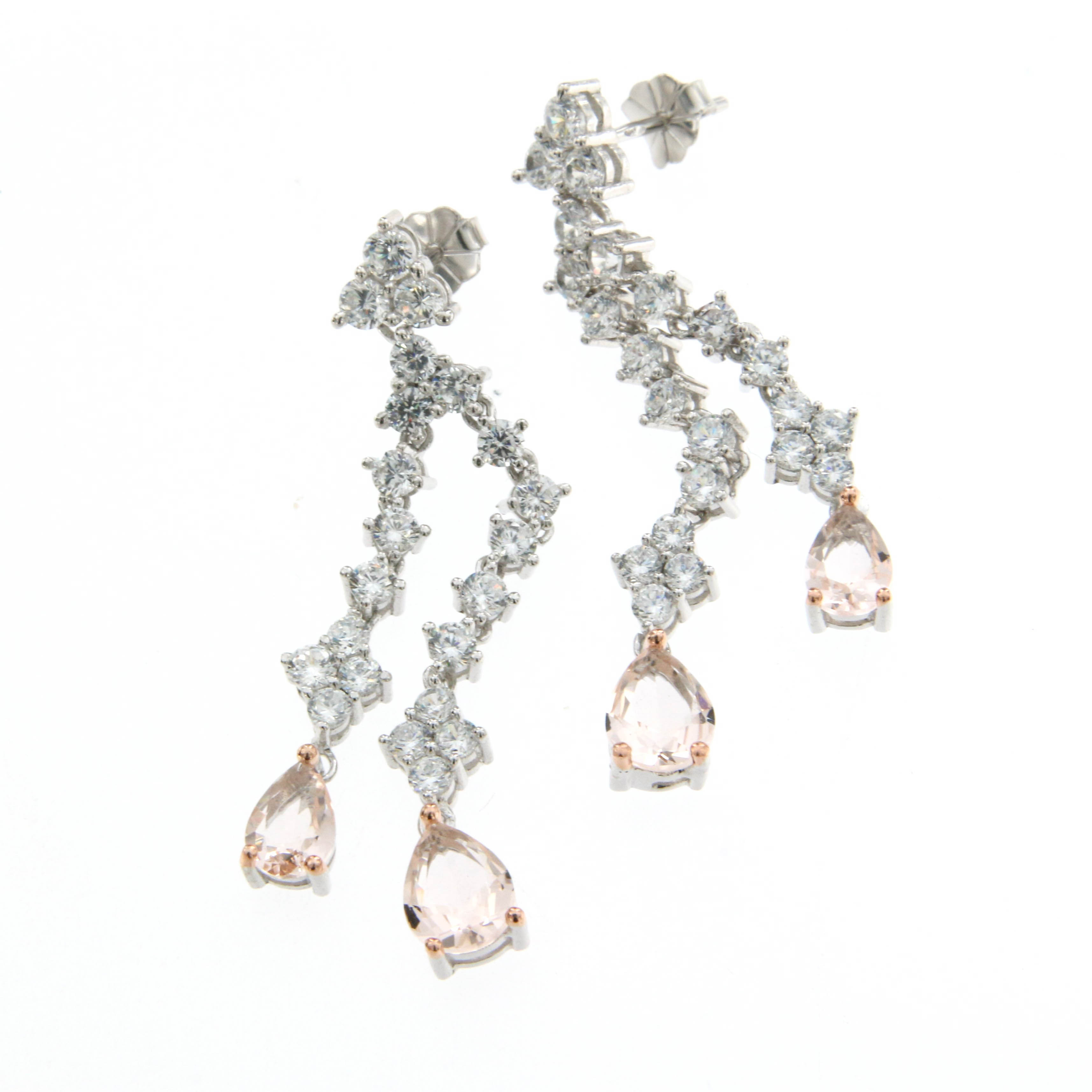 Обеци от "Jacklin hugasian'в сребро с розов кварц и цирконий.