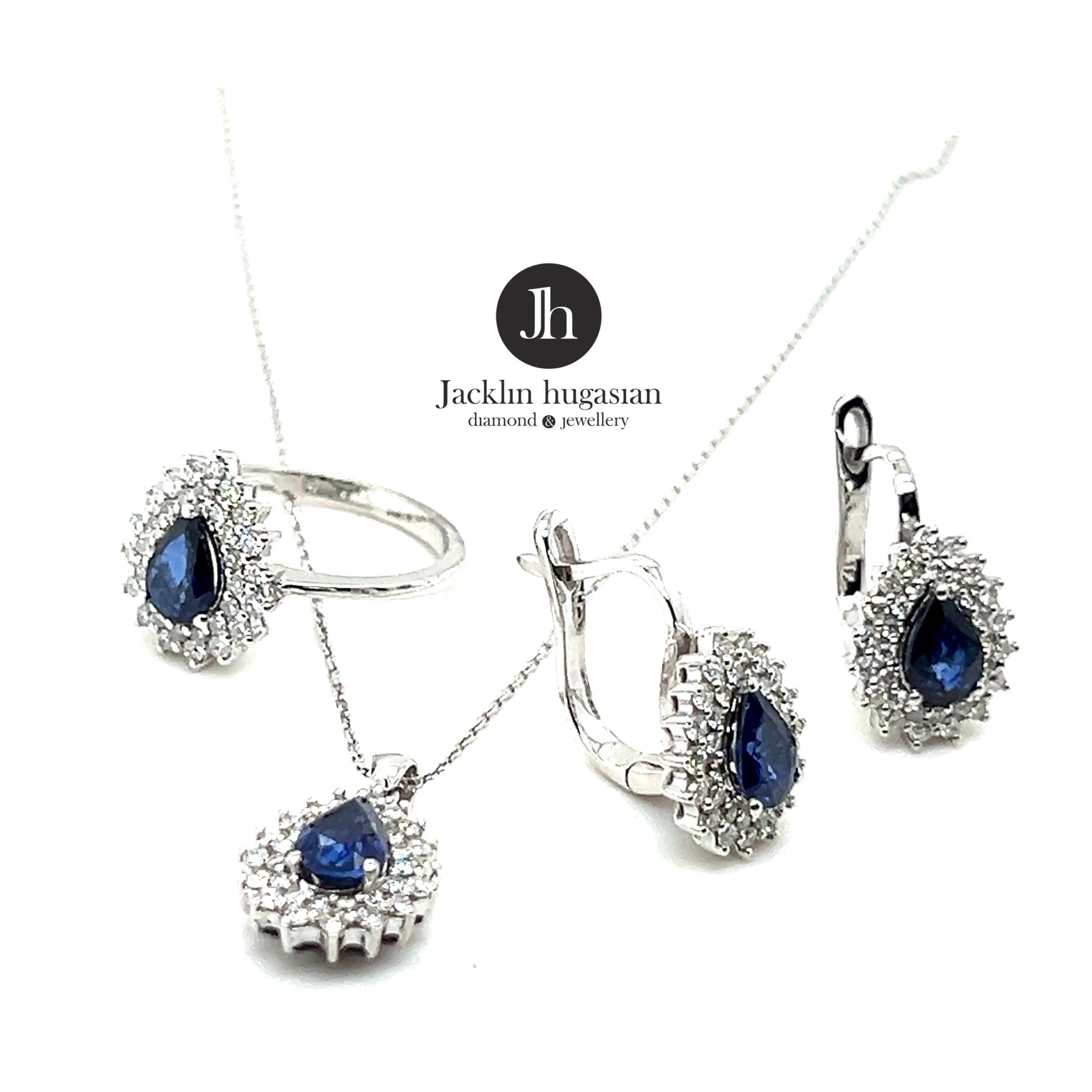 Пръстен от "Jacklin hugasian" в бяло злато със сапфир и диаманти.
