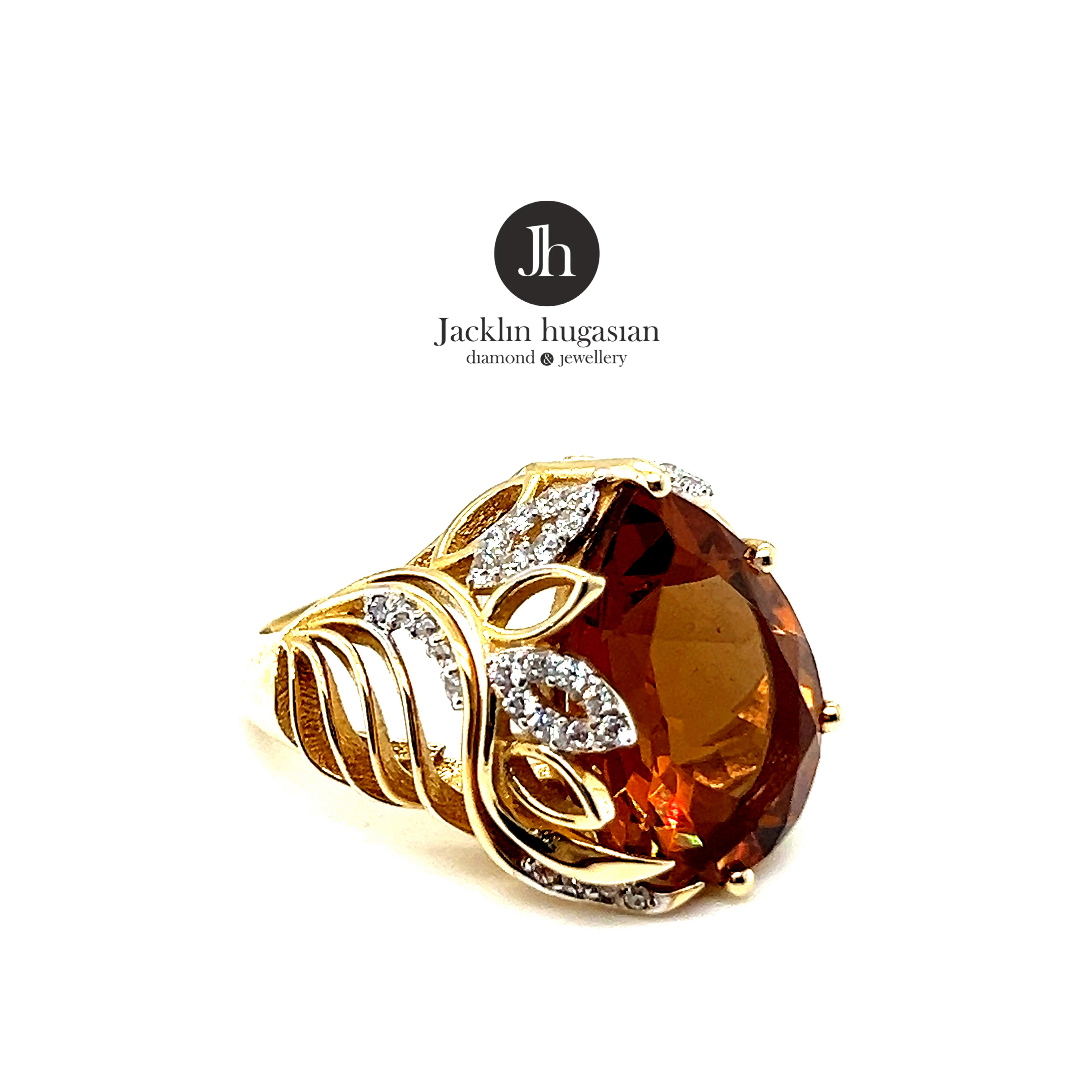 Пръстен от “Jacklin hugasian” в жълто злато със султанит и циркони.