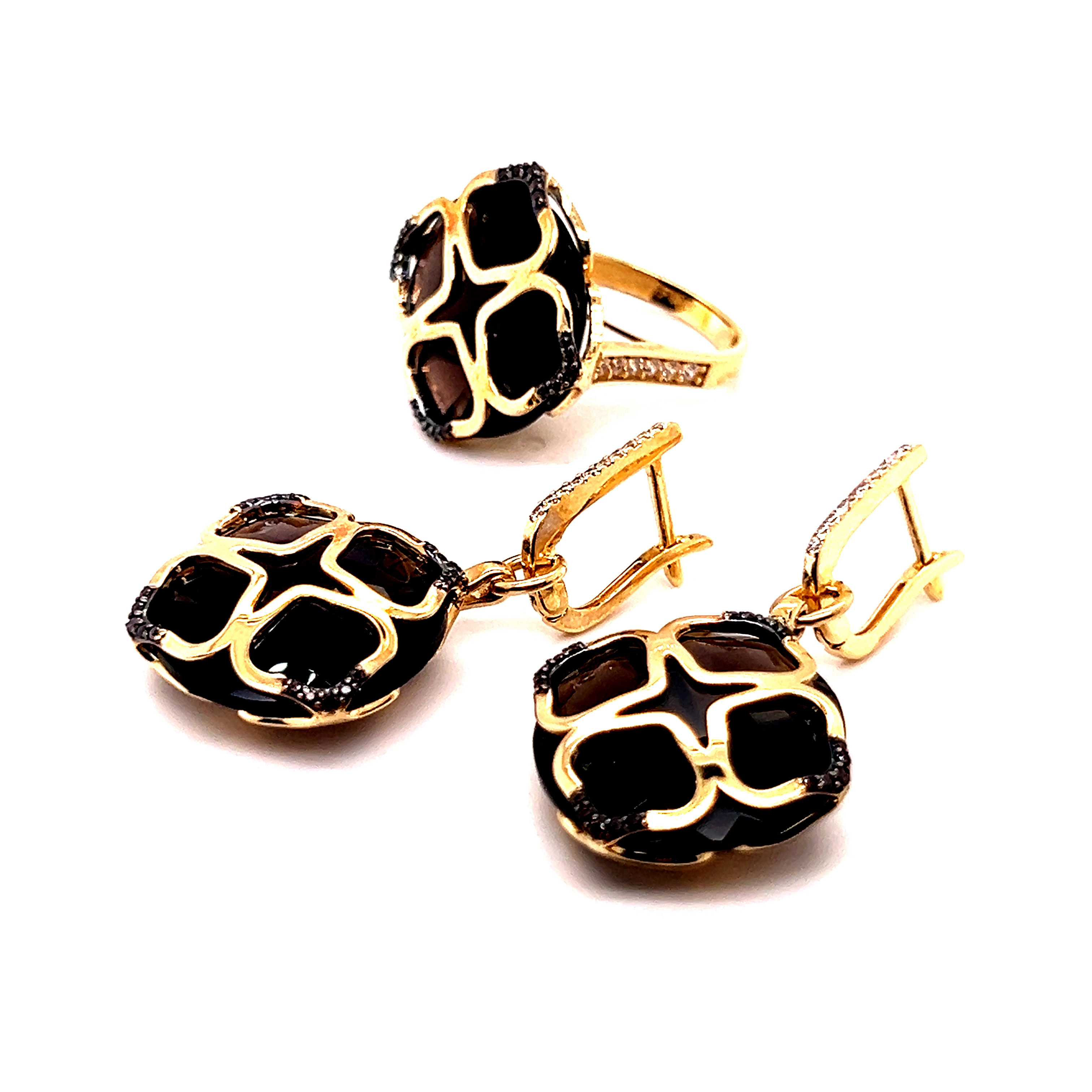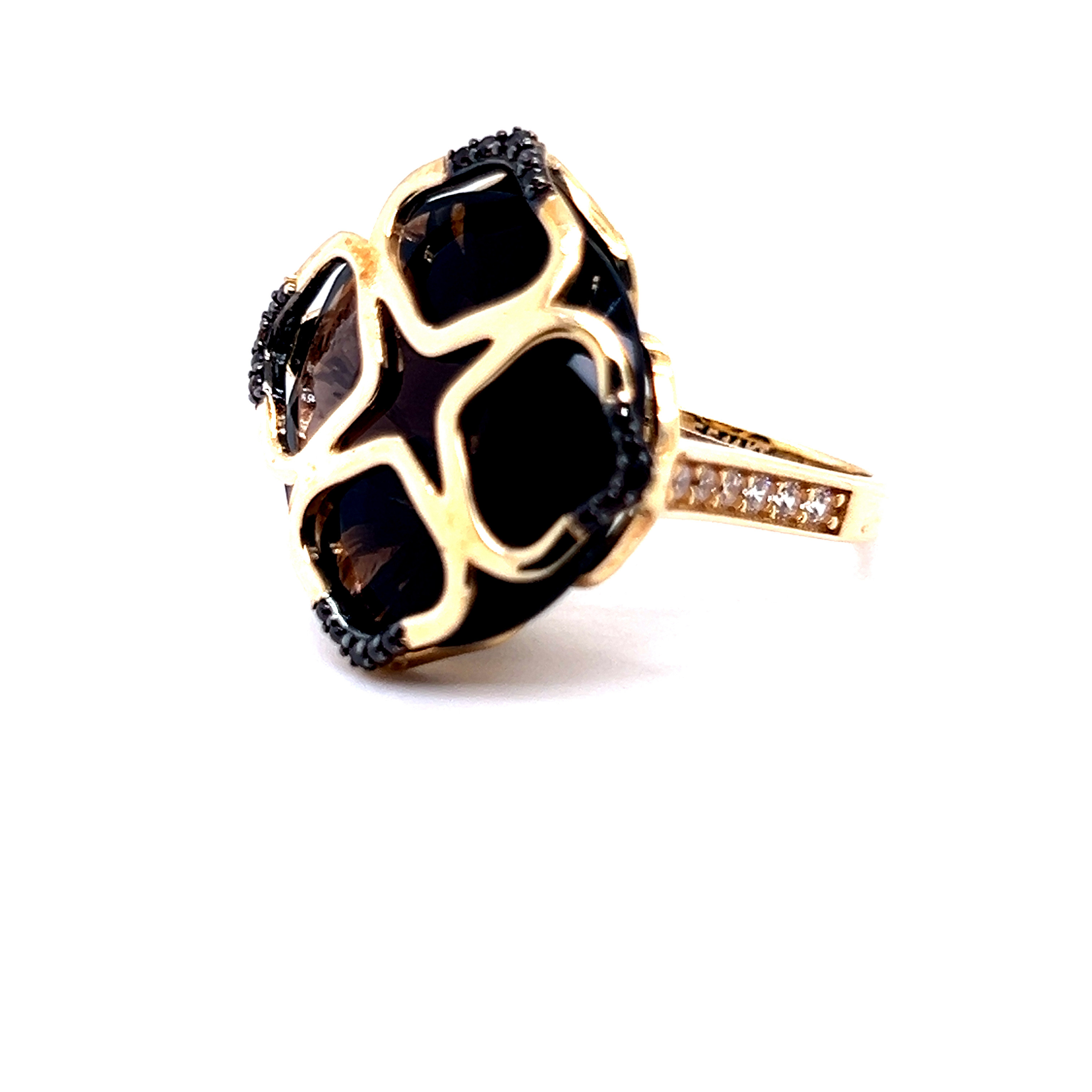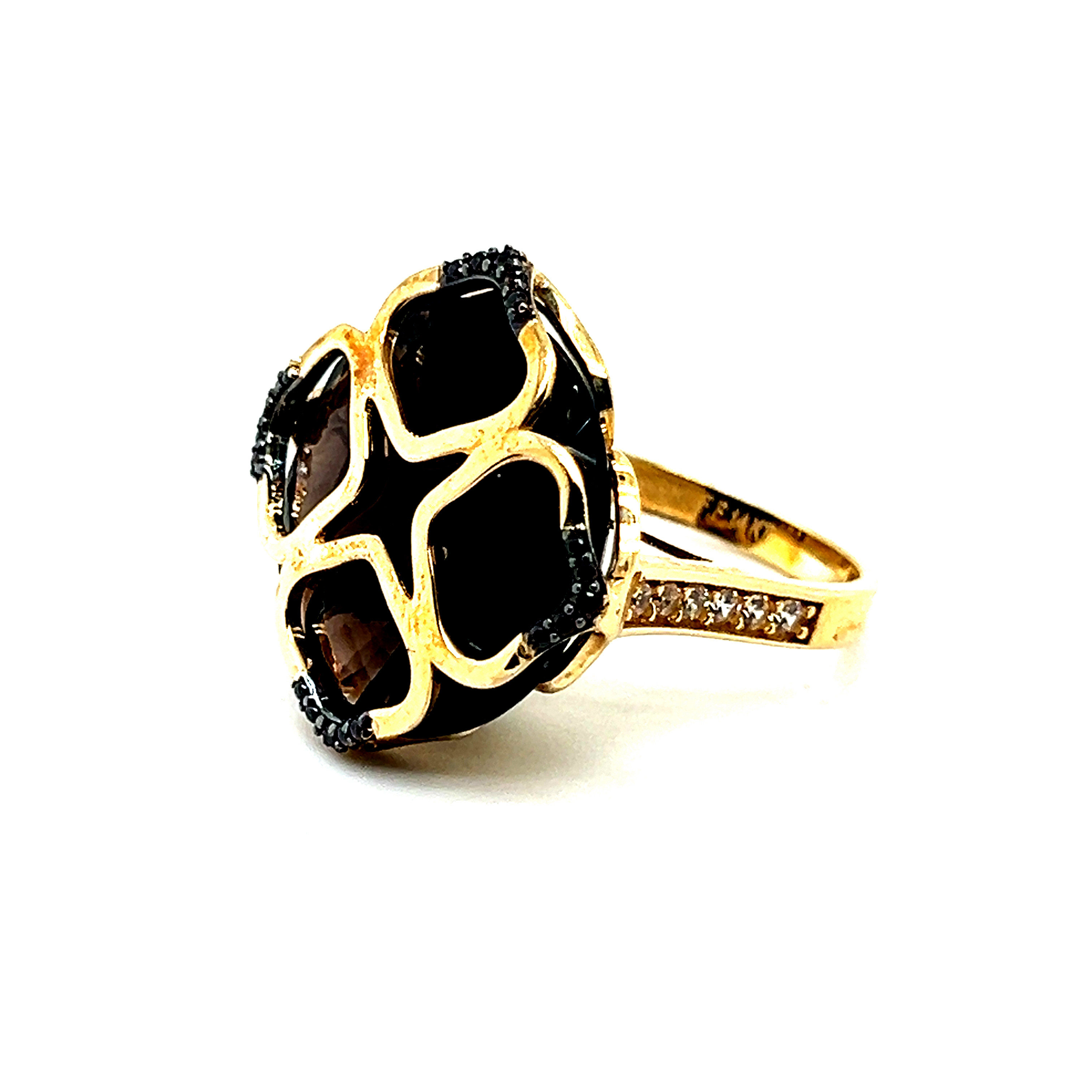 Пръстен от “Jacklin hugasian” в жълто злато с опушен топаз и цирконии