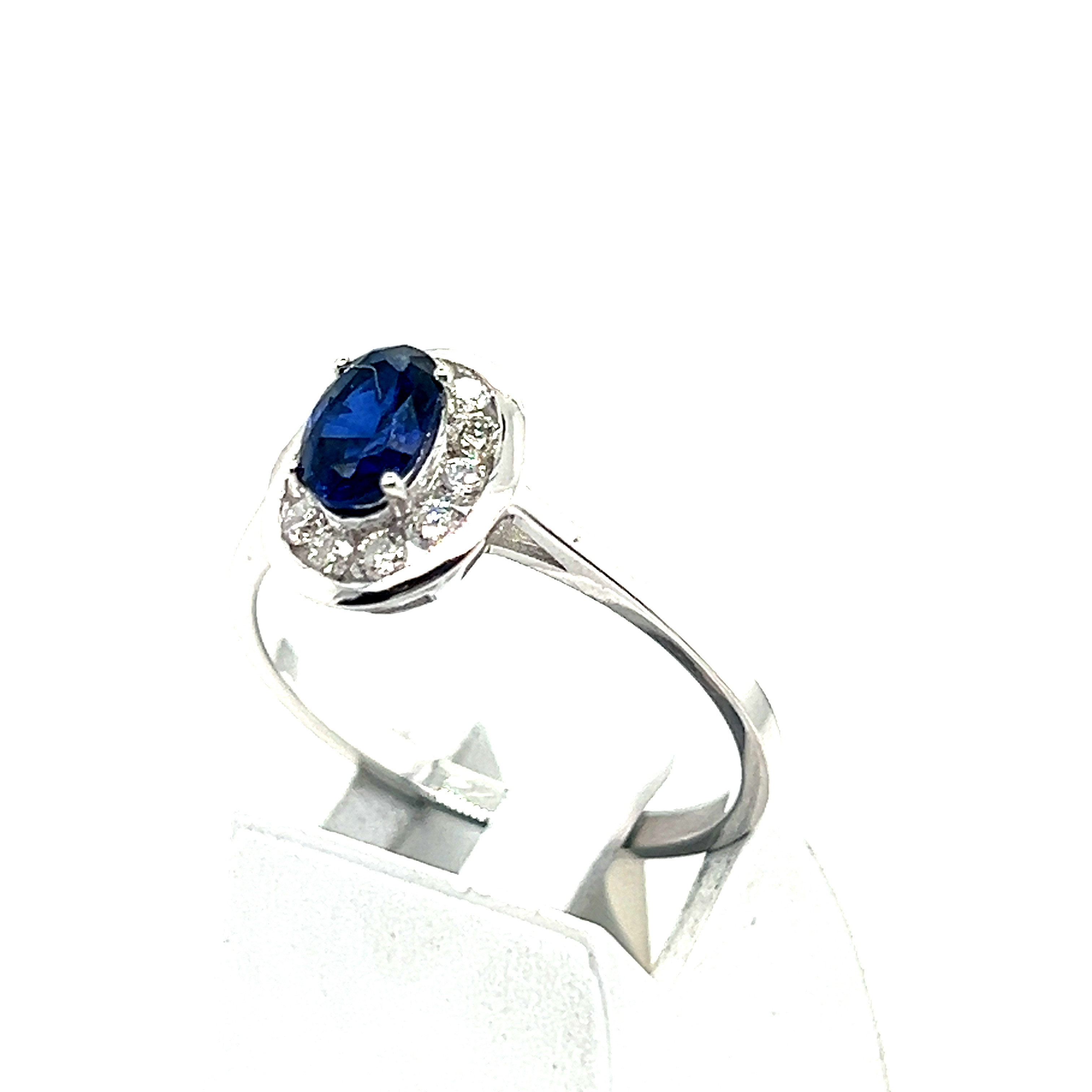 Пръстен от "Jacklin hugasian" в бяло злато с диамант и сапфир.