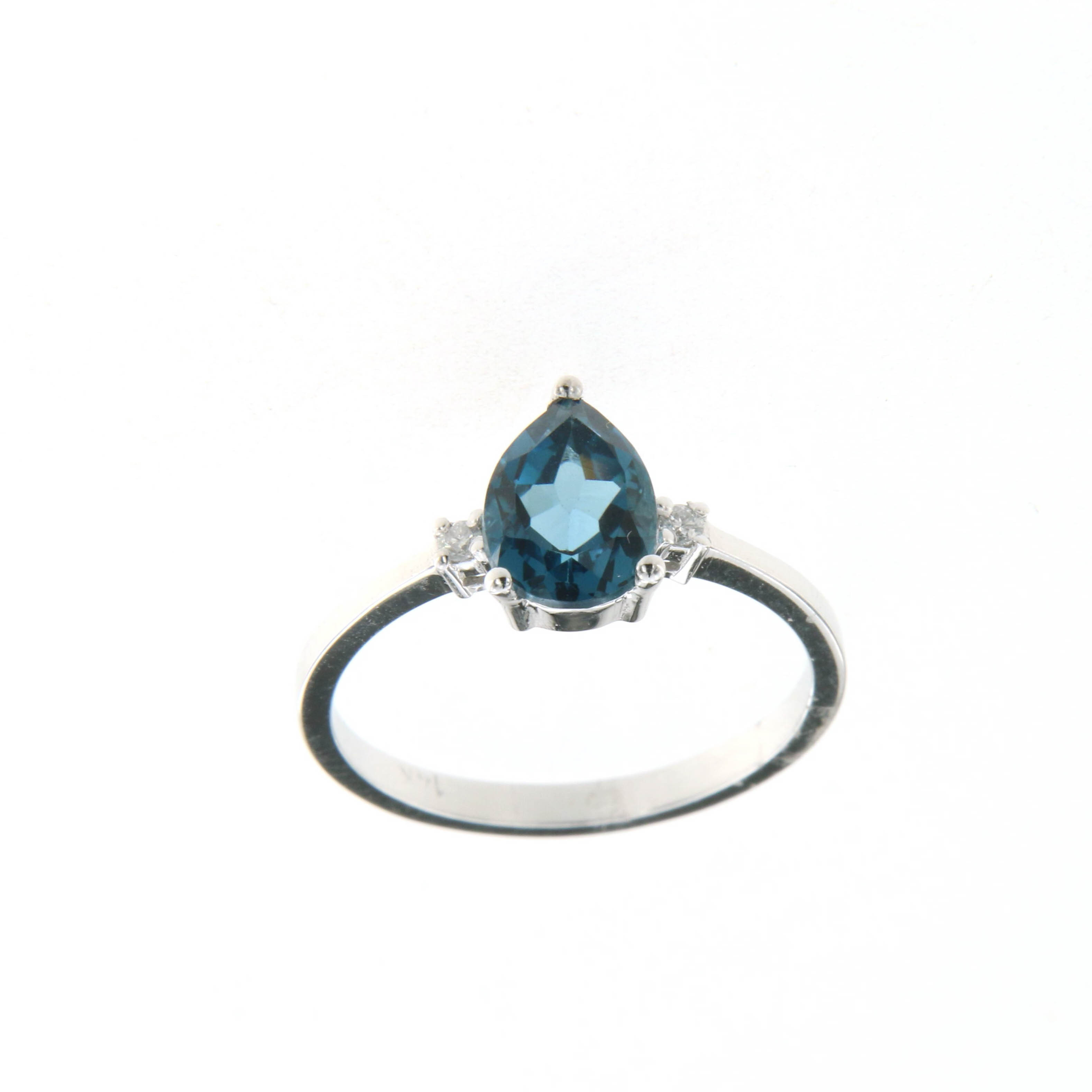 Пръстен от “Jacklin hugasian” бяло злато с диаманти и Лондон топаз.