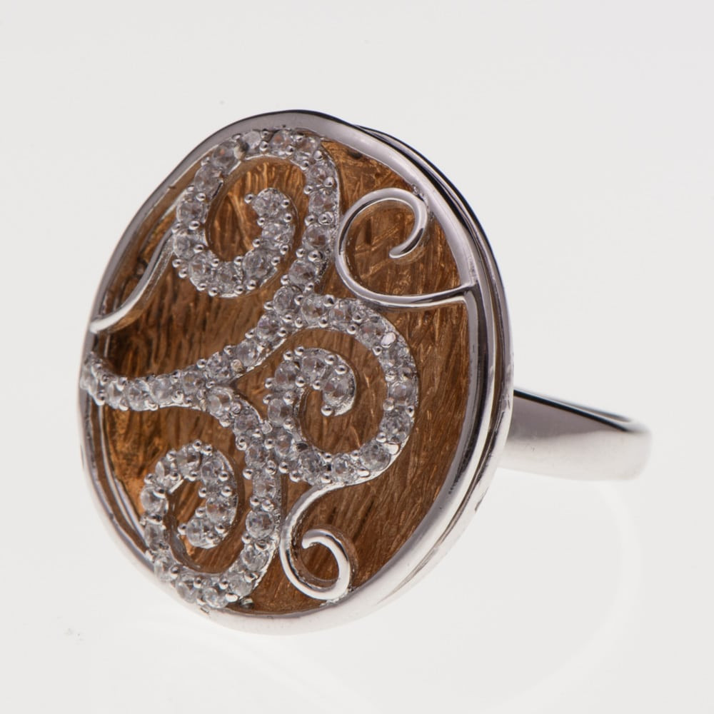 Пръстен от "Jacklin hugasian" с цирконии и жълта позлата. Произход Италия.