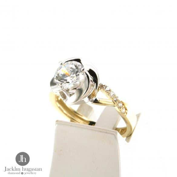 Пръстен от "Jacklin hugasian" в бяло и жълто злато с циркон