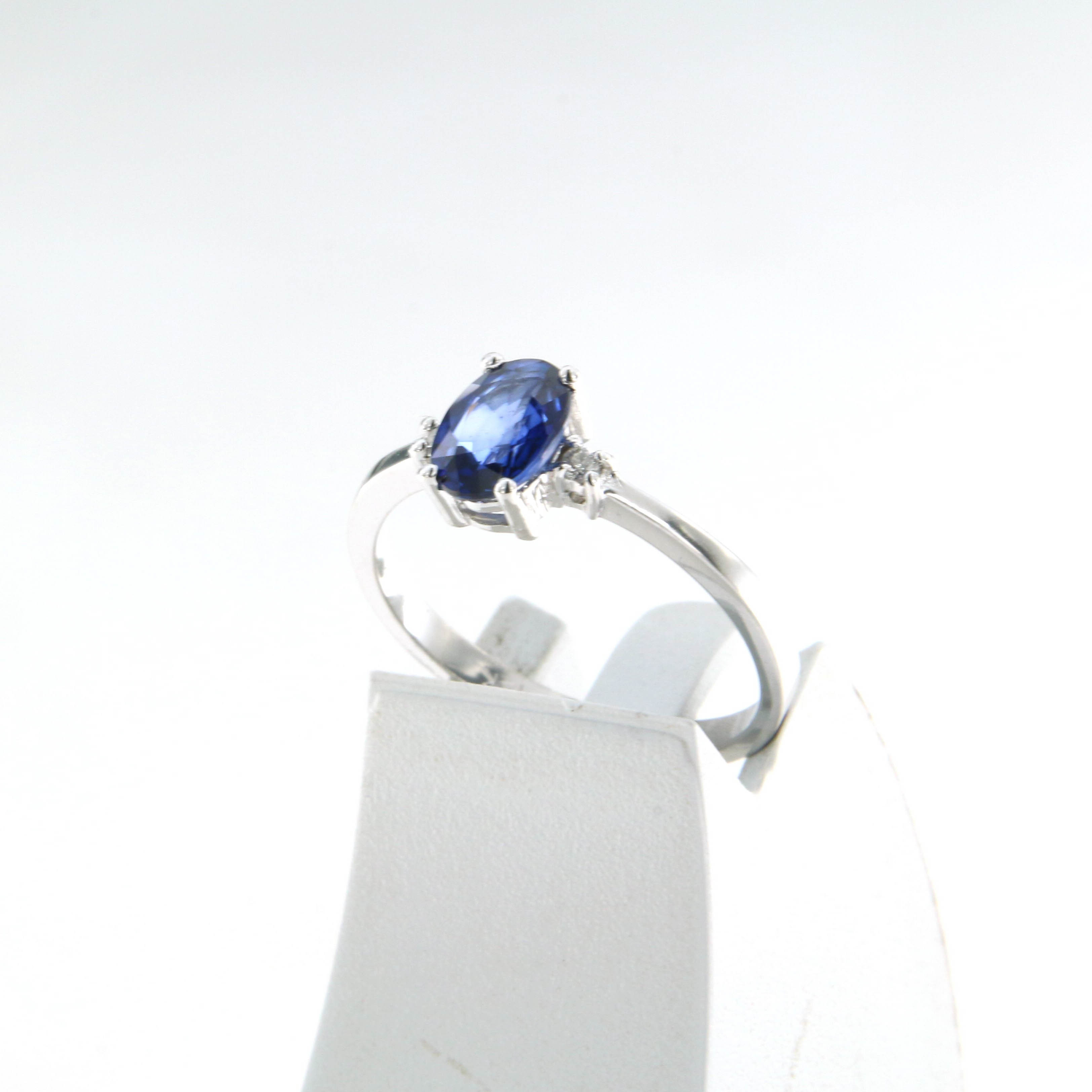 Пръстен от “Jacklin hugasian” в бяло злато със сапфир и диаманти.