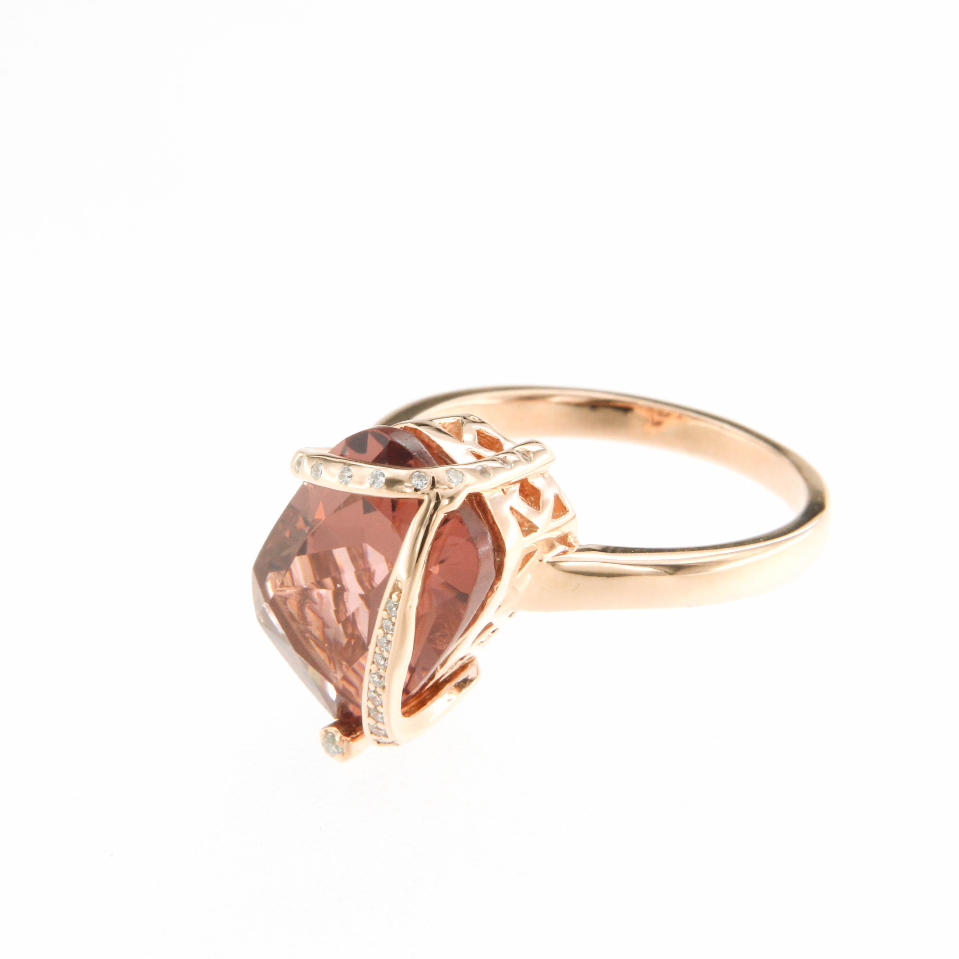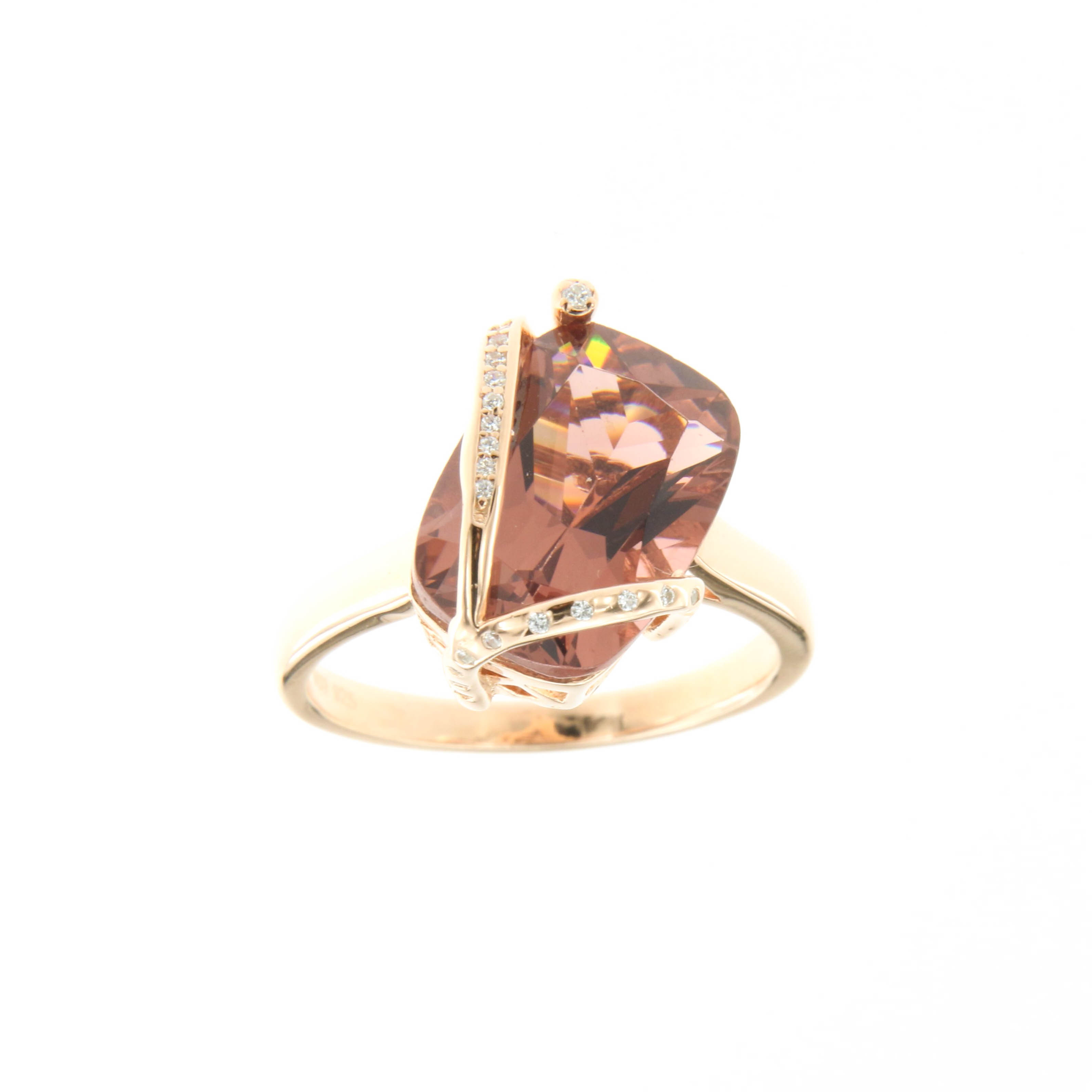 Пръстен от “Jacklin hugasian” в розово сребро с морганит и циркони.