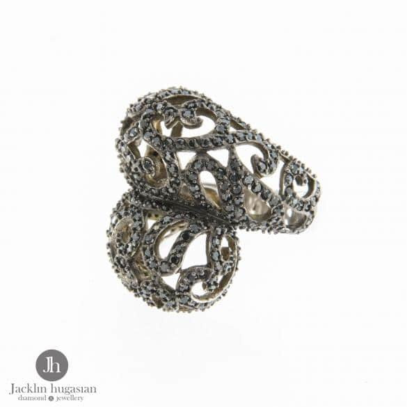 Пръстен от "Jacklin hugasian" в сребро с черни оникси.