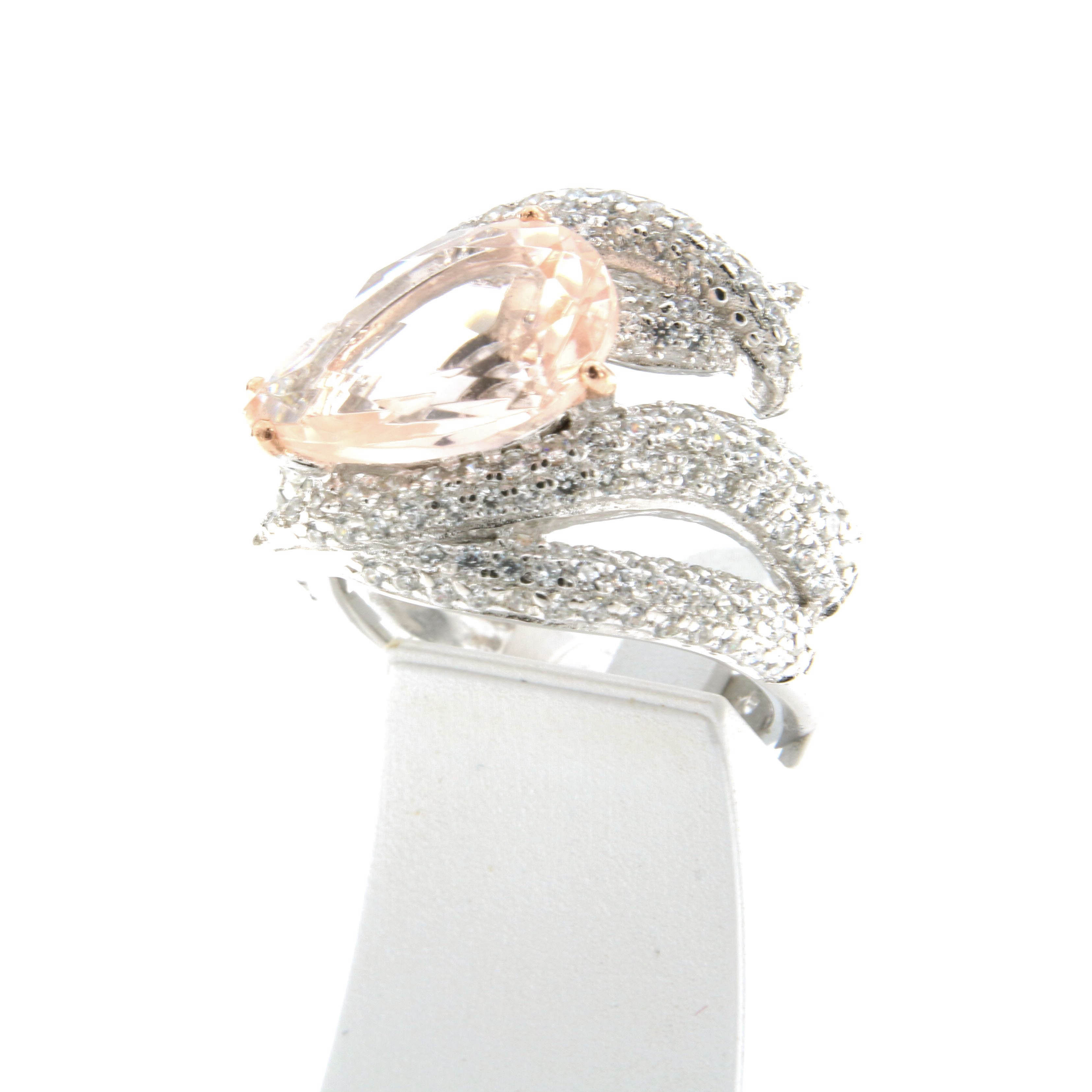 Пръстен от "Jacklin hugasian" в сребро с циркони и розов кварц.