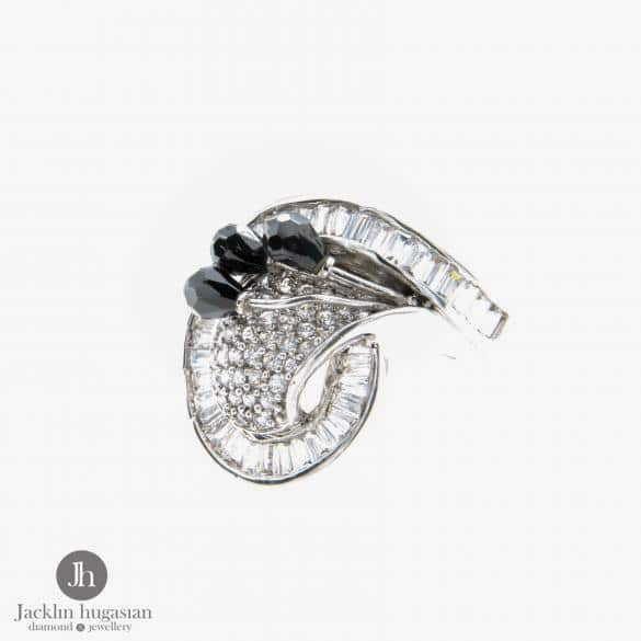 Пръстен от "Jacklin hugasian" в сребро с цирконии и черни оникси.
