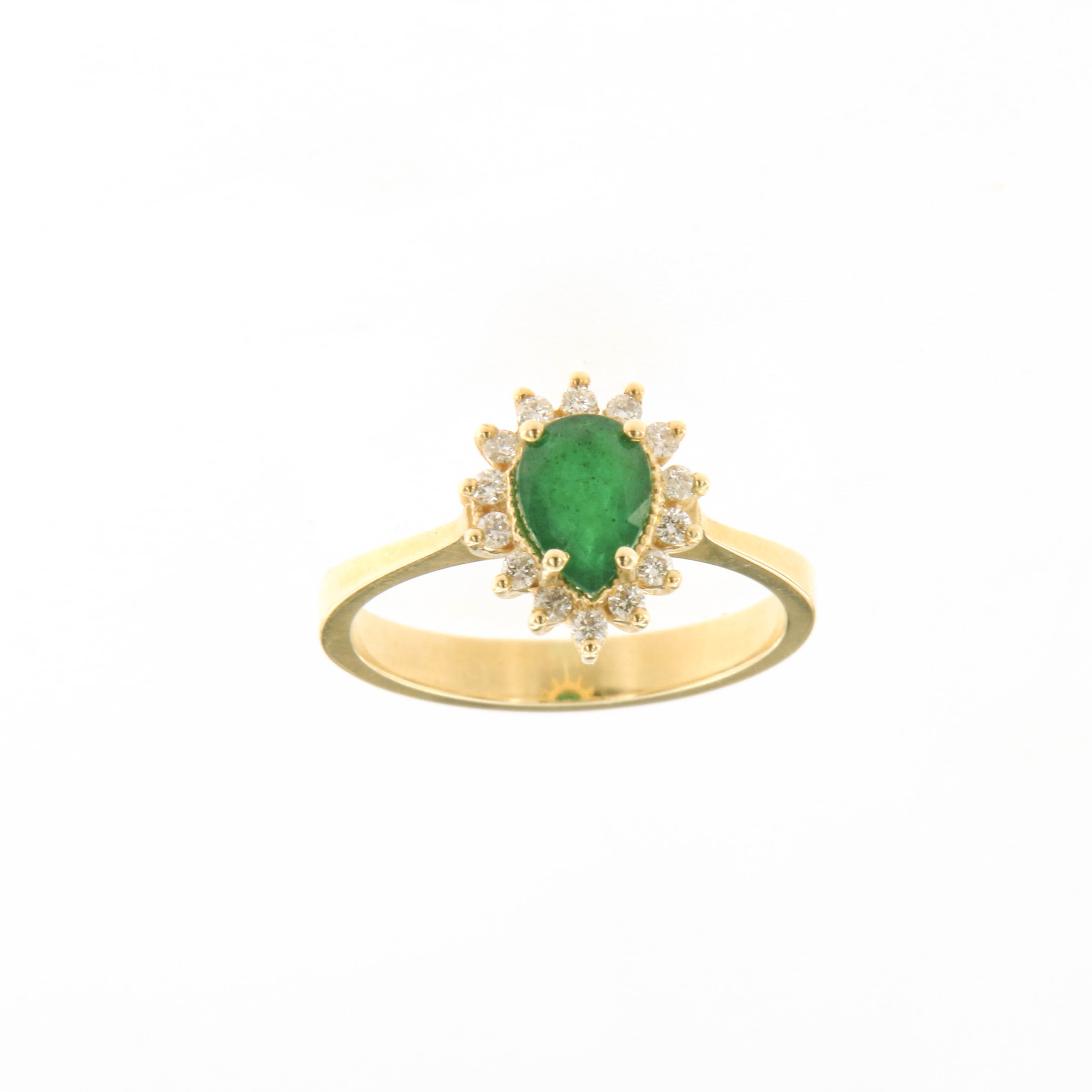 Пръстен от ” Jacklin hugasian ” в жълто злато с диаманти и естествен изумруд.