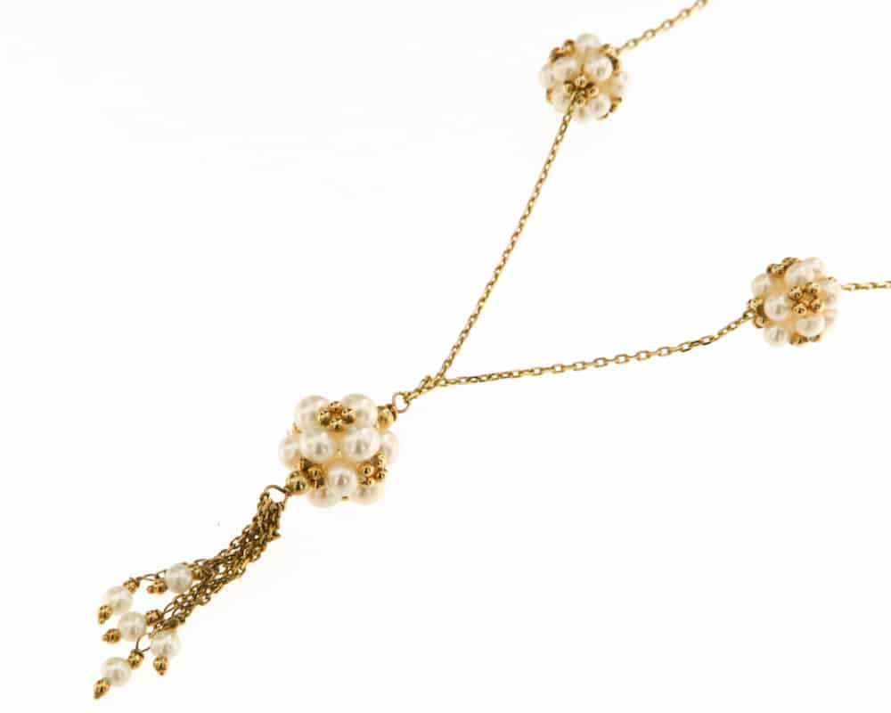 Колие от "Jacklin hugasian" в жълто злато с култивирани бели перли.