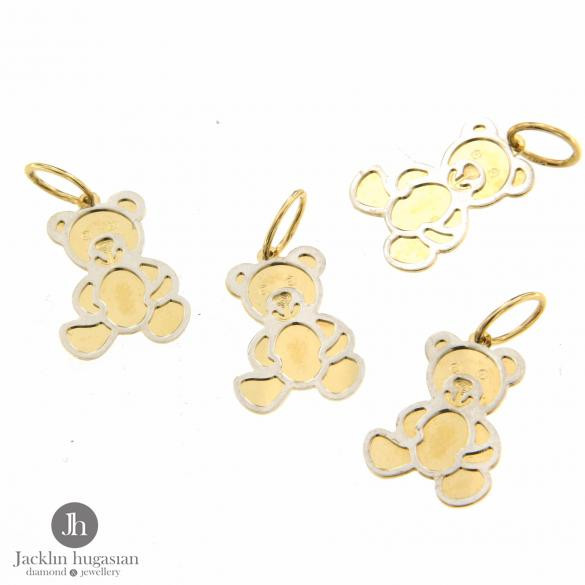 Висулка " Мече " от " Jacklin hugasian " в бяло и жълто злато,гланц.Дължина висулка 2.00 см., широчина 1.1 см.Произход Италия.