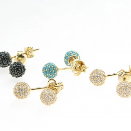 Обеци от " Jacklin " в жълто злато,гланц с цирконии,олекотени