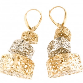 Обеци от "Jacklin " в жълто и бяло злато гланц филиграмна изработка триъгълна форма