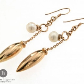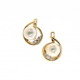 Oбеци от " Jacklin " в жълто злато,гланц с цирконии и култивирани бели перли