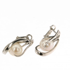 Обеци от " Jacklin " бяло злато с култивирани бели перли