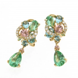 Обеци от “Jacklin ” в сребро с цирконии и розов турмалин.