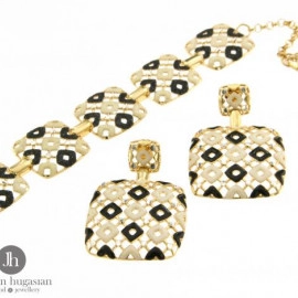 Комплект обеци и гривна от" Jacklin " в сребро с позлата с разноцветен емайл