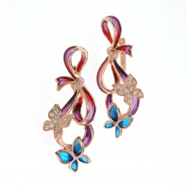 Обеци от "Jacklin " в розово сребро с цветен емайл и циркони