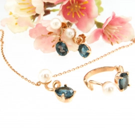 Комплект пръстен и обеци от “Jacklin ” в сребро с цирконии и тъмно син сапфир
