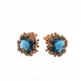 Обеци от “Jacklin ” в розово сребро с циркони и сапфир