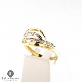 Пръстен от "Jacklin " в жълто и бяло злато гланц с цирконии