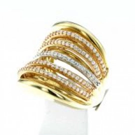 Пръстен от "Jacklin " в жълто, бяло и розово злато с циркони