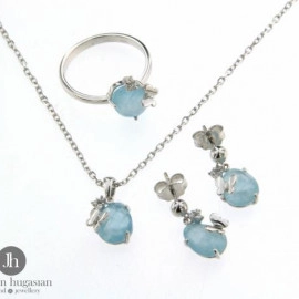 Пръстен от "Jacklin " в бяло злато с диаманти и аквамарин