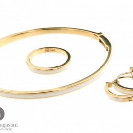 Комплект пръстен,гривна и обеци от " Jacklin " в жълто злато с бял емайл