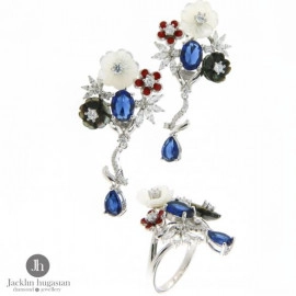 Комплект пръстен и обеци от "Jacklin " в сребро със седеф, кралски седеф, цветен емайл , циркон и сапфир