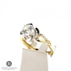 Пръстен от "Jacklin " в жълто и бяло злато с циркони