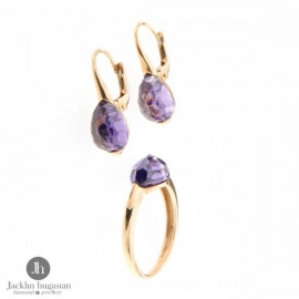 Комплект пръстен и обеци от "Jacklin " в розово злато, гланц с аметист колекция "ROBERTO BRAVO"