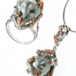 Комплект пръстен и висулка от "Jacklin " с цирконии и култивирана перла