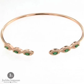 Гривна от " Jacklin " в розово сребро с изумруд и цирконий